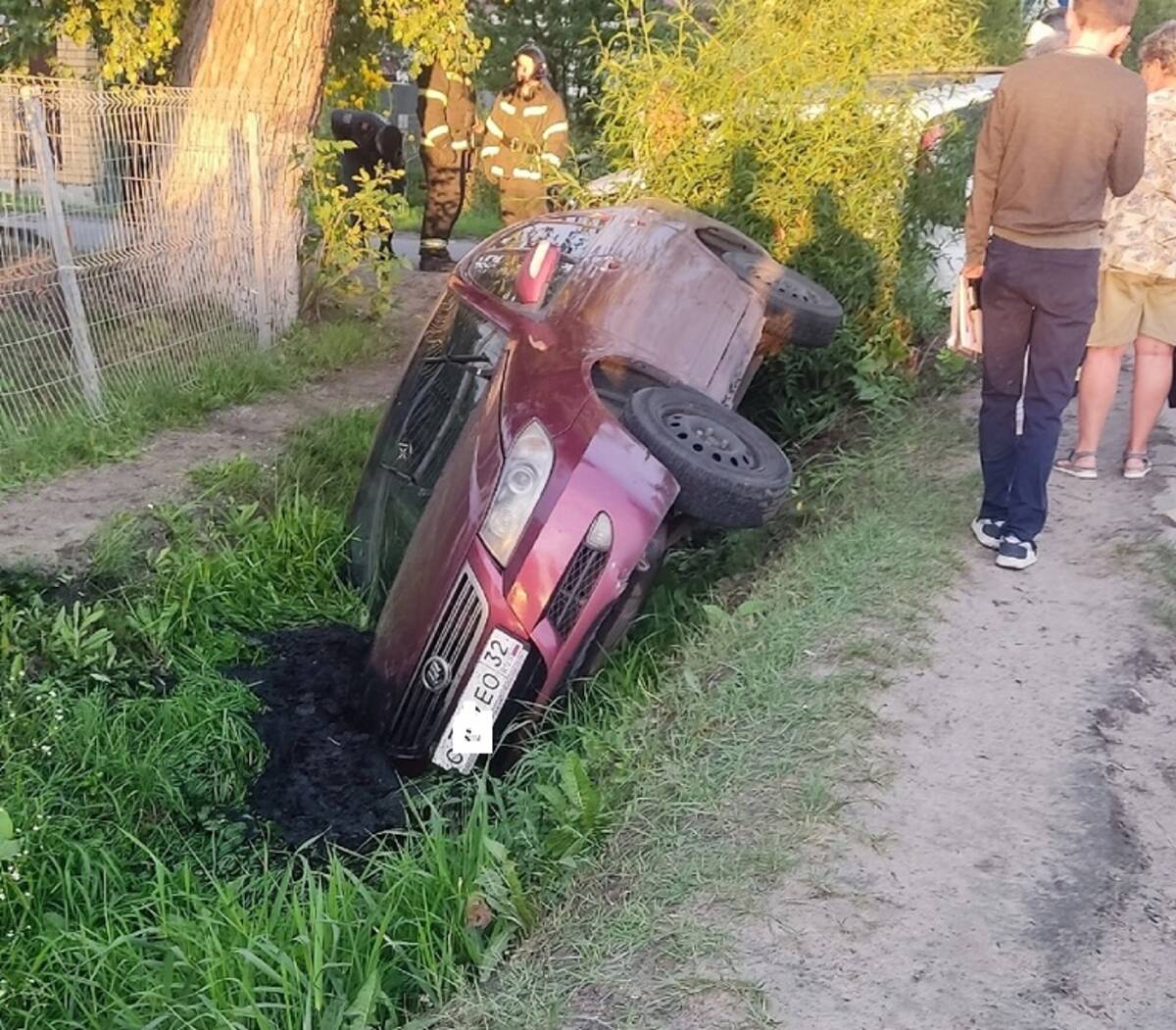 В Брянске попавшая в ДТП с двумя авто иномарка угодила в канаву