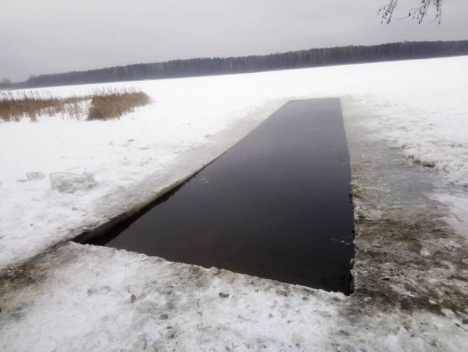 Температура воздуха около полуночи в Брянске составляла +4ºC. В это время шел дождь. Всего в регионе для омовений организовали 58 прорубей.