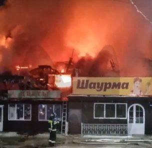 Мы уже сообщали о крупном пожаре в поселке Новые Дарковичи Брянского района. Огнем охвачено здание с гостиницей, автосервисом, кафе и магазинами.