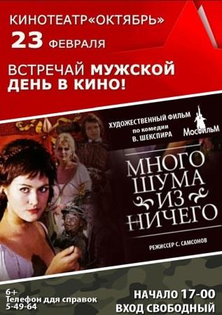 Приглашаем 23 февраля в 17.00 на просмотр кинофильма "Много шума из ничего", снятого нашим выдающимся земляком Самсоном Самсоновым.