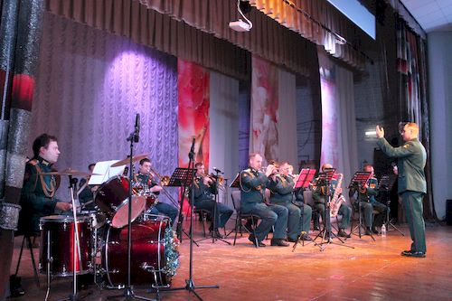 Перед Новым годом в районном Доме культуры прошла встреча с уже полюбившимся гастролером — духовым оркестром войсковой части 42685 (пос.