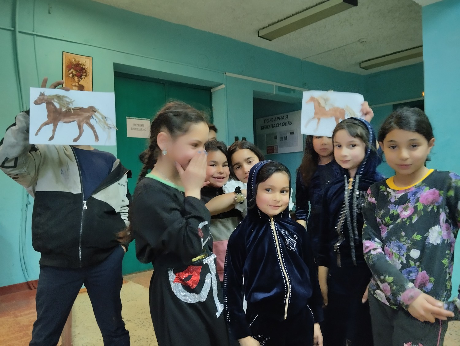 Затем была проведена игровая программа. Ребята активно принимали участие во всех конкурсах, танцевали цыганскую польку, исполняли песни на родном языке, рисовали коней и делали из шпагата гриву и хвост.