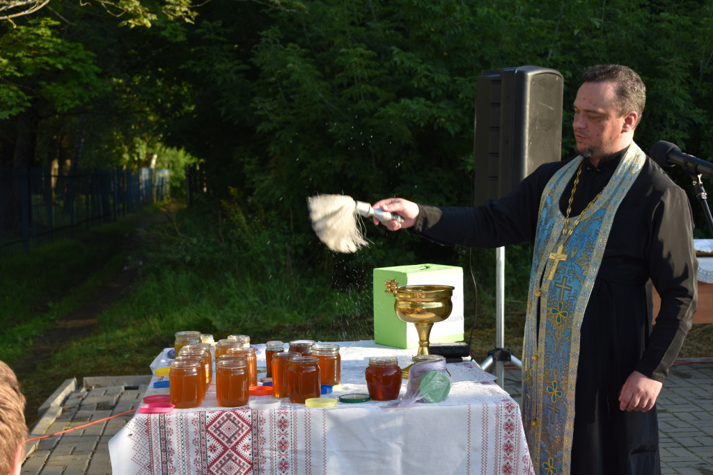 Священнослужитель Петропавловского храма отец Алексей поздравил с праздником жителей села Ольховка и освятил мед.