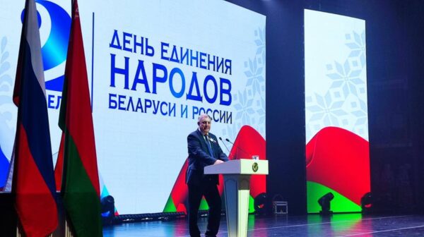 В Гомеле состоялось большое праздничное собрание, посвященное Дню единения народов России и Беларуси. Глава брянского региона Александр Богомаз поздравил собравшихся в зале со значимой датой в истории обоих государств.