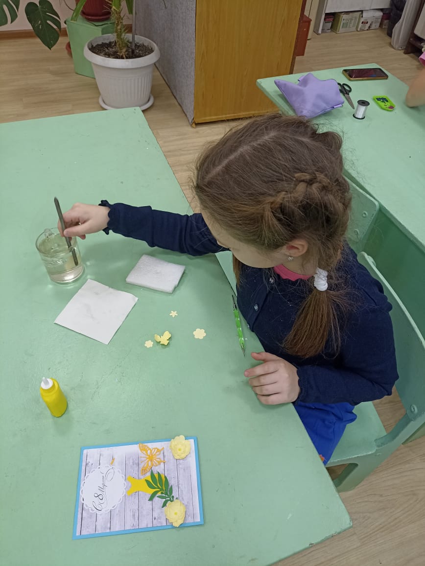 3 марта в Центре детского творчества педагог дополнительного образования Матусевич Лариса Владимировна провела мастер - класс «Открытка к 8 Марта для мамы!».