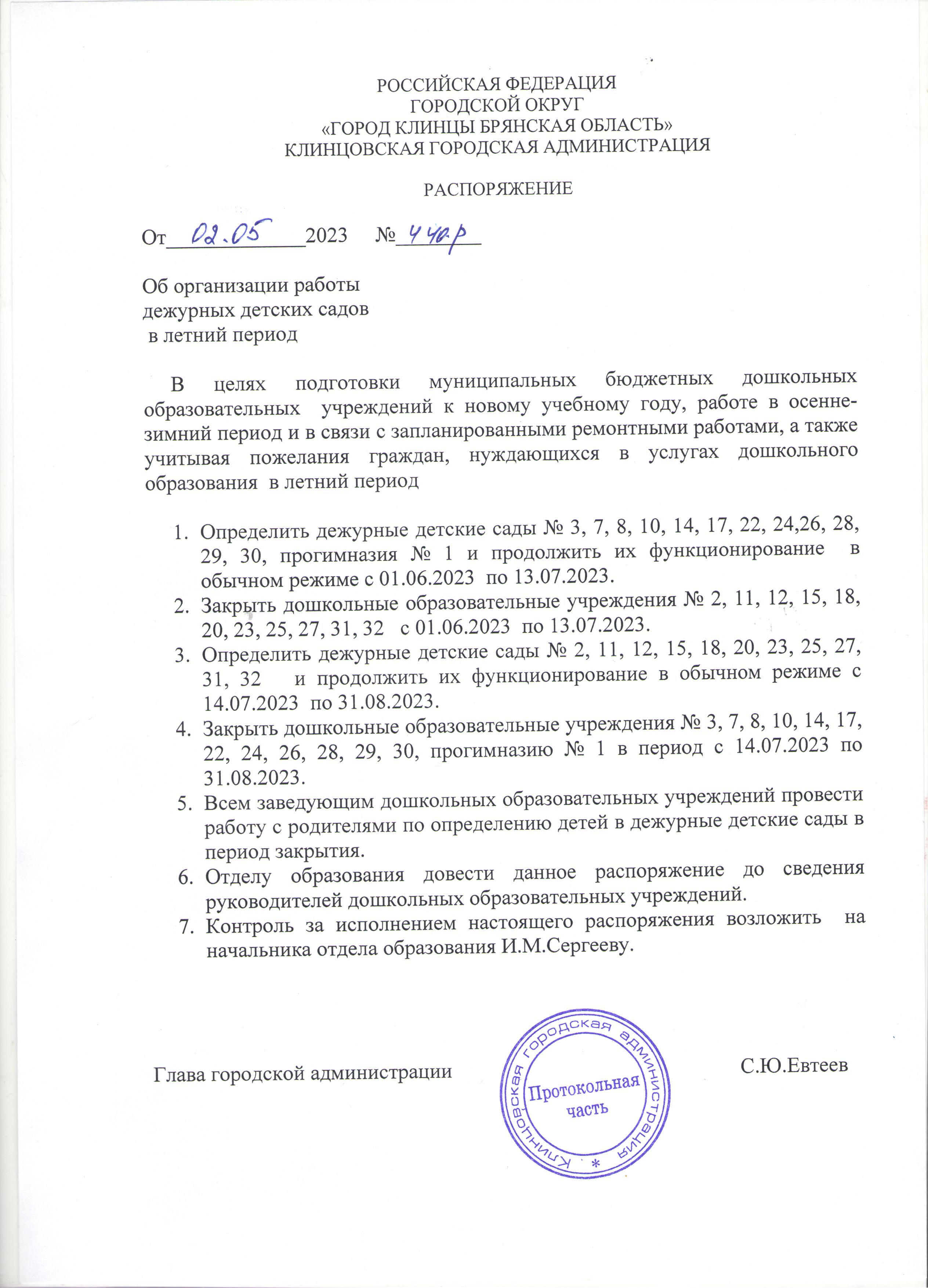 Направления в дошкольные образовательные учреждения будут выдаваться с 21 по 31 августа 2023 года с 8.30 до 13.00, с 14.00 до 17.45 по адресу: г.Клинцы, ул.Октябрьская,