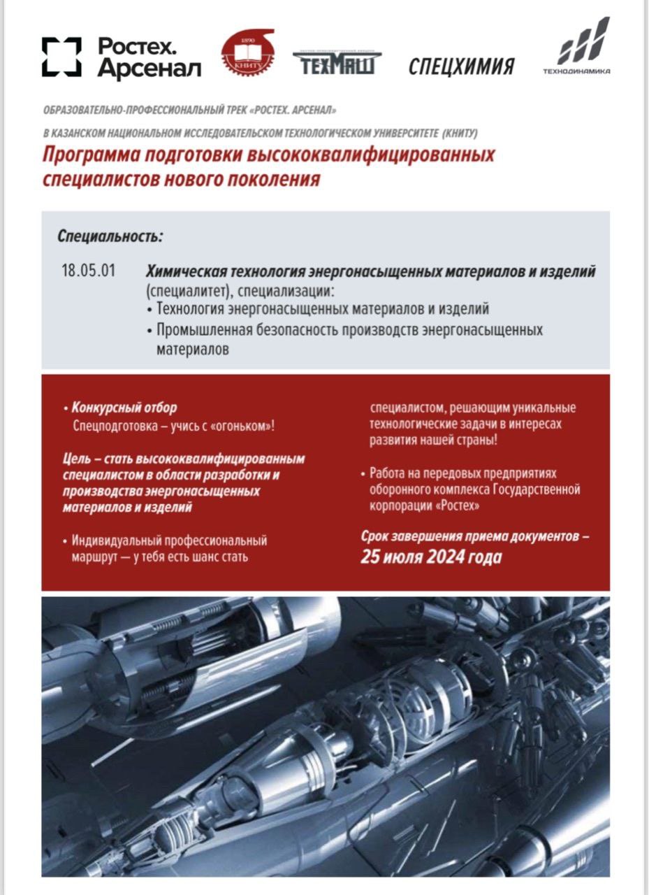 В 2024 г. в КНИТУ стартует новый проект – образовательно-профессиональный трек «Ростех. Арсенал».