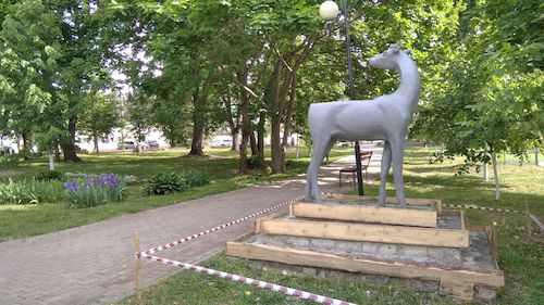 В Карачевском городском парке идет реставрация постамента скульптуры «Олень».