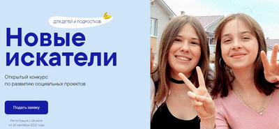 В период с 24 июля по 30 ноября 2023 года Благотворительный Фонд Елены и Геннадия Тимченко проводит Открытый конкурс реализованных общественных инициатив детей и подростков «Новые искатели». Оператором конкурса выступает АНО «Агентство социальных инвестиций и инноваций». Конкурс разработан в рамках новой стратегии для создания поддерживающей и развивающей среды на малых территориях, повышающей благополучие детей и подростков. К участию в конкурсе приглашаются проектные команды, состоящие из трех и более участников (дети и подростки в возрасте от 12 до 18 лет включительно), реализующие социально значимые проекты в своих городах и селах с численностью населения до 200000 человек. Победители получат финансовую поддержку на развитие и масштабирование своего проекта в размере до 100000 рублей на период до 31 мая 2024 года, а также экспертное сопровождение специалистами конкурса. Заявки принимаются до 24 сентября 2023 года на официальном сайте конкурса по адресу: https://novye-iskateli.timchenkofoundation.org/