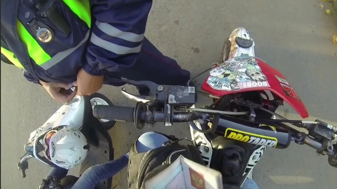 Повторим еще раз ездить по дорогам общего пользования на спортивном инвентаре, будь то питбайк, кроссовый или эндуро мотоцикл без ПТС, строго ЗАПРЕЩЕНО .