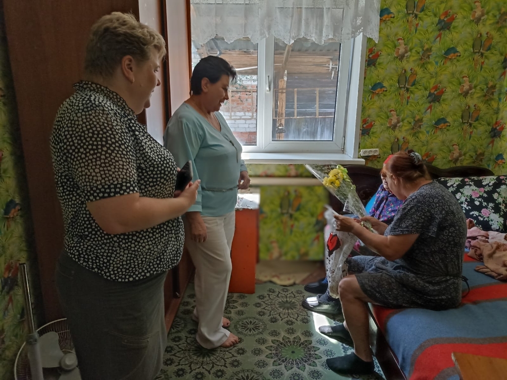 Заместитель главы администрации Клинцовского района Максименко Л.И. и начальник отдела социальной защиты населения Клинцовского района Карпинова Т.Е. передали поздравления от Президента России Путина В.В., от Губернатора Брянской области Богомаз А.В., а так же от администрации Клинцовского района и пожелали этим замечательным женщинам крепкого здоровья, бодрости духа на долгие годы. Чтобы каждый день согревал теплом и улыбками близких людей!