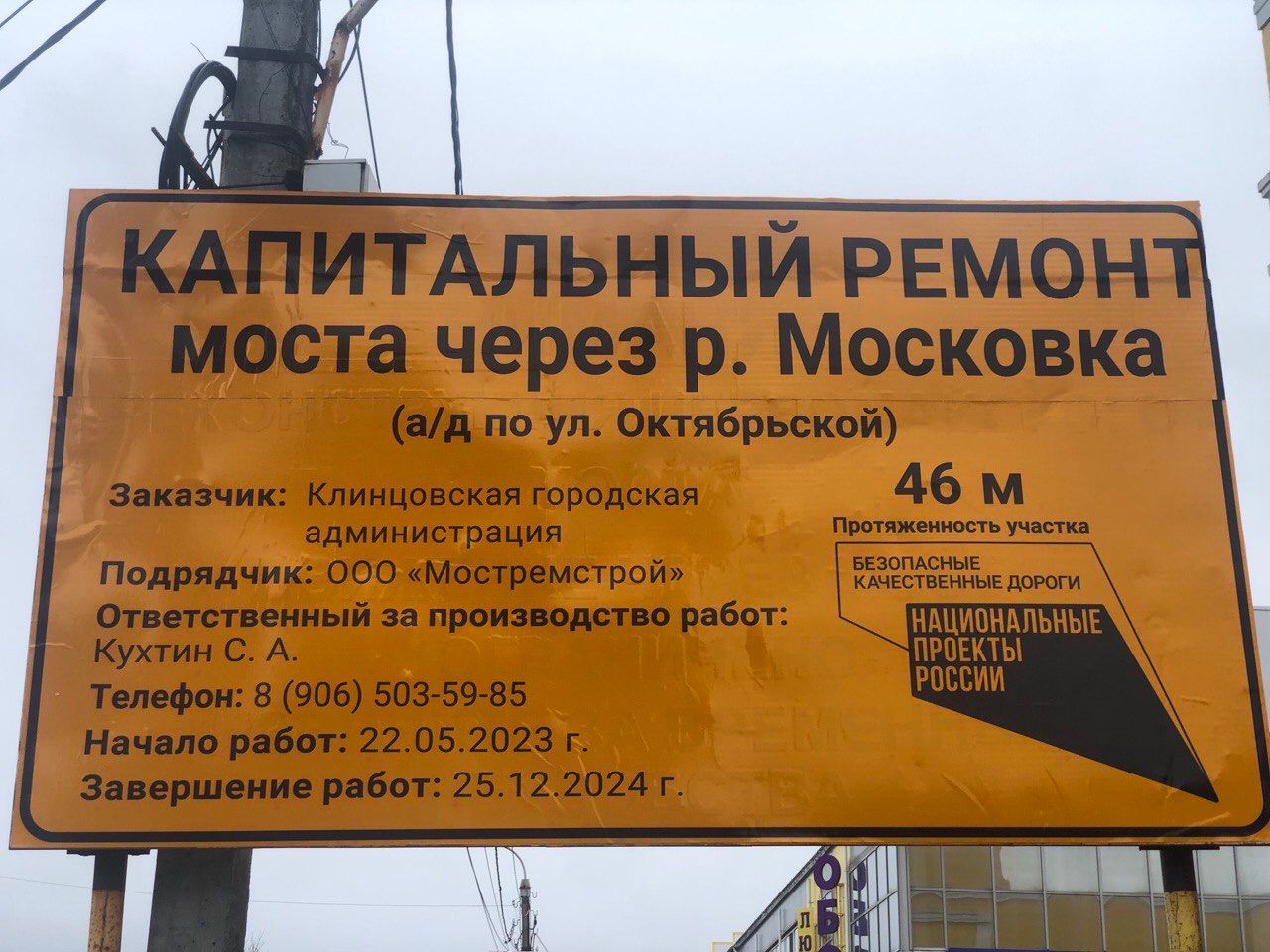 В городе Клинцы продолжается капитальный ремонт автодорожного моста через реку Московка по ул. Октябрьской в г. Клинцы Брянской области