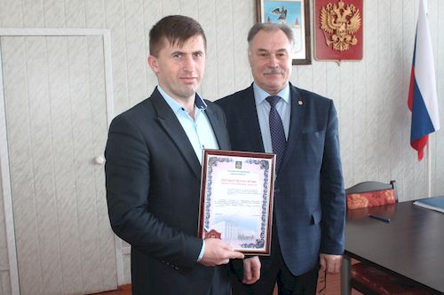 Глава администрации Леонид Васильевич Филин вручил Благодарственное письмо первому заместителю Сергею Александровичу Шкуркину за подписью Губернатора Александра Васильевича Богомаза. В документе отмечена эффективная работа комиссии по делам несовершеннолетних и защите их прав при администрации Карачевского района (председатель Сергей Александрович Шкуркин).