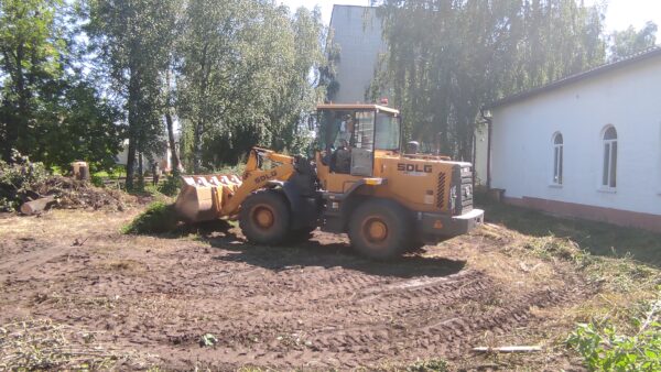 На месте будущего сквера отдыха в Трубчевске между корпусом ДШИ имени А. Вяльцевой и детской библиотекой рабочие ООО «Формат» частично демонтировали старый забор и приступили к расчистке территории. Сейчас выкашиваются травяные и древесные заросли, на линии будущего ограждения спилены два дерева. С помощью спецтехники пни от деревьев выкорчуют, затем снимут верхний плодородный слой грунта, и проведут выравнивание площадки. После этого уложат геотекстиль и установят бордюры. На следующем этапе будет произведена укладка тротуарной плитки на дорожки сквера, установлена сцена, скамейки, урны, освещение, разработаны клумбы и газоны, подведут электричество. На благоустройство этой общественной территории в рамках проекта инициативного бюджетирования из областного бюджета выделено около 2,4 млн рублей.