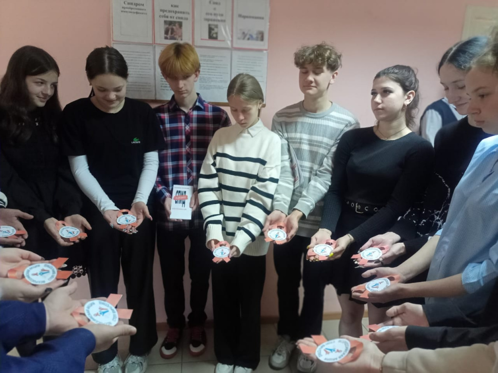 Медработник Алина Валерьевна рассказала ребятам о происхождении вируса иммунодефицита человека, о способах его передачи, признаках болезни, способах защиты, активной жизненной позиции по предотвращению поведенческих рисков, связанных с возможностью заражения ВИЧ и убеждении в необходимости соблюдения здорового образа жизни с целью профилактики ВИЧ-инфекции.