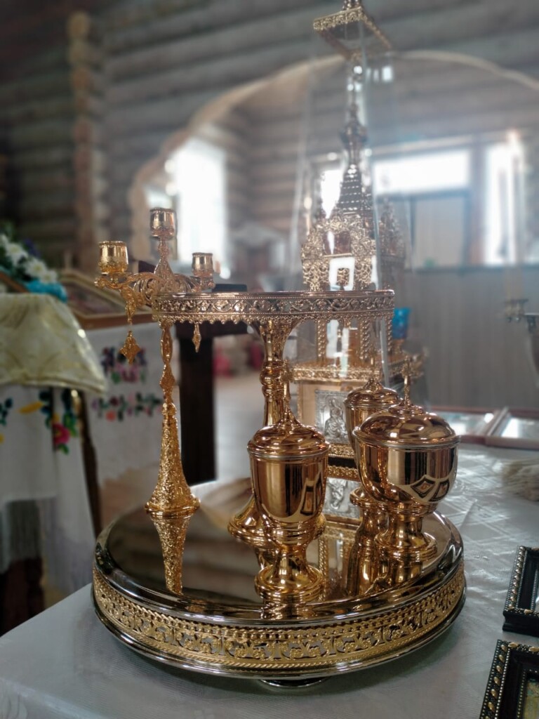 Помимо дарохранительницы были подарены литийница и напрестольная лампада. Все эти предметы церковной утвари необходимы для совершения полных богослужений годового богослужебного цикла.