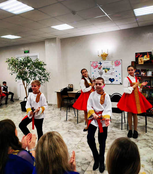 Воспитанники воскресной школы исполнили песни, танцы, стихотворения, сценки для всех женщин, присутствующих на концерте.