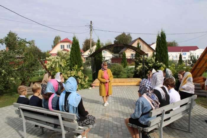 Воскресная школа при храме в честь Успения Пресвятой Богородицы г. Мглина собрала на очередное занятие своих воспитанников. Урок-беседа, который прошел под открытым небом на прихрамовой территории, был посвящен природе, ее красоте и гармонии. Занятие с детьми провели директор воскресной школы Светлана Александровна Рыжакова и преподаватель Елена Ивановна Бабакова.
