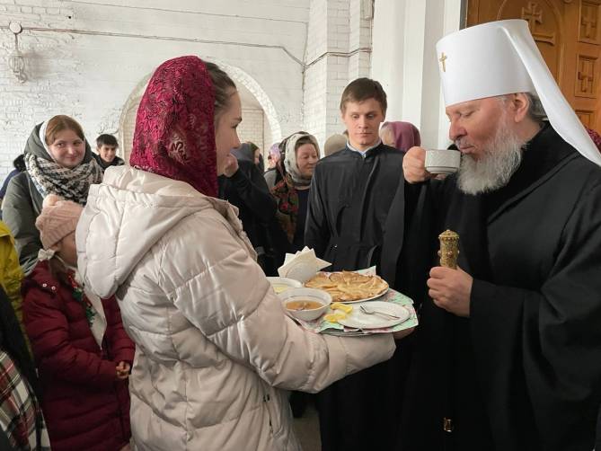 После богослужения митрополит Александр обратился с архипастырским словом к молящимся. «Сегодня Прощеное воскресенье, и Святое Евангелие напоминает нам всем с вами о том, что если мы не научимся прощать недостатки, слабости, немощи или, если говорить по-церковному, грехи наших ближних, всех, кто живет рядом с нами, то и Отец Небесный не простит нам наших согрешений, которых так много, что их можно сравнить с песком морским», — сказал он.