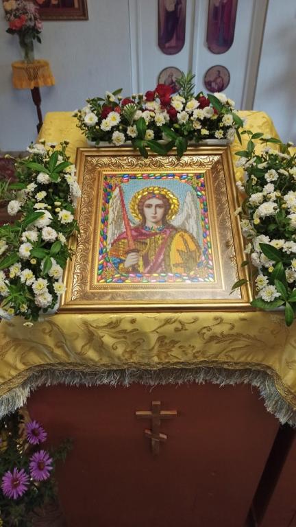 чтением молитвы Архистратигу Божию Михаилу. Иерей Иоанн поздравил всех присутствующих с праздником и рассказал о чуде, совершенном Чиноначальником Высших Сил и о ангельском воинстве.