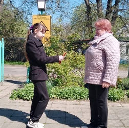Ребята вручали георгиевскую ленточку жителям своего поселка.