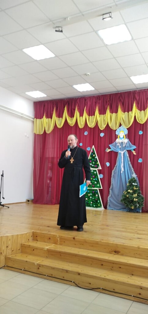 Священнослужитель зачитал рождественское обращение епископа Клинцовского и Трубчевского. Собравшимся школьникам, их родителям и наставникам, священнослужитель пожелал мира во всём мире, сплоченности и милости Божией.