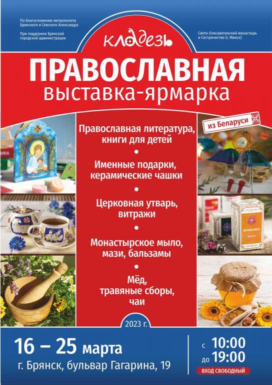 С 16 по 25 марта в г. Брянске пройдет благотворительная выставка-ярмарка «Кладезь» , ставшая уже традиционным весенним подарком для жителей г. Брянска от сестер Свято-Елисаветинского монастыря г. Минска.