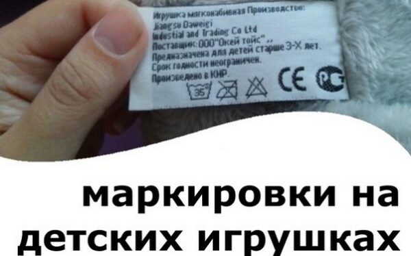 В зависимости от вида игрушки в содержание маркировки включают: комплектность (для наборов), правила эксплуатации игрушки, способы гигиенической обработки, меры безопасности при обращении с игрушкой, предупредительные надписи, инструкцию по сборке.