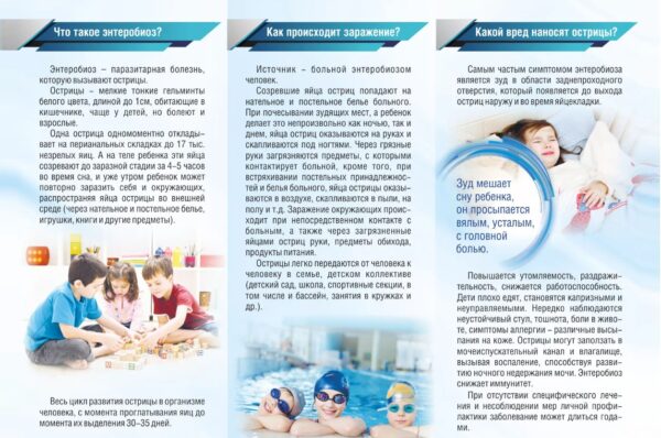 уборку помещений проводить с мыльным раствором; мыть или обрабатывать пылесосом детские игрушки; ваш ребенок должен иметь отдельную постель и свое полотенце.Помните, что выполнение вышеуказанных санитарно-гигиенических мероприятий, позволит предотвратить заболевание вашего ребенка энтеробиозом и заражение окружающих. Гельминты — вредны и опасны, но заражение ими легче предупредить, чем потом с ними бороться.