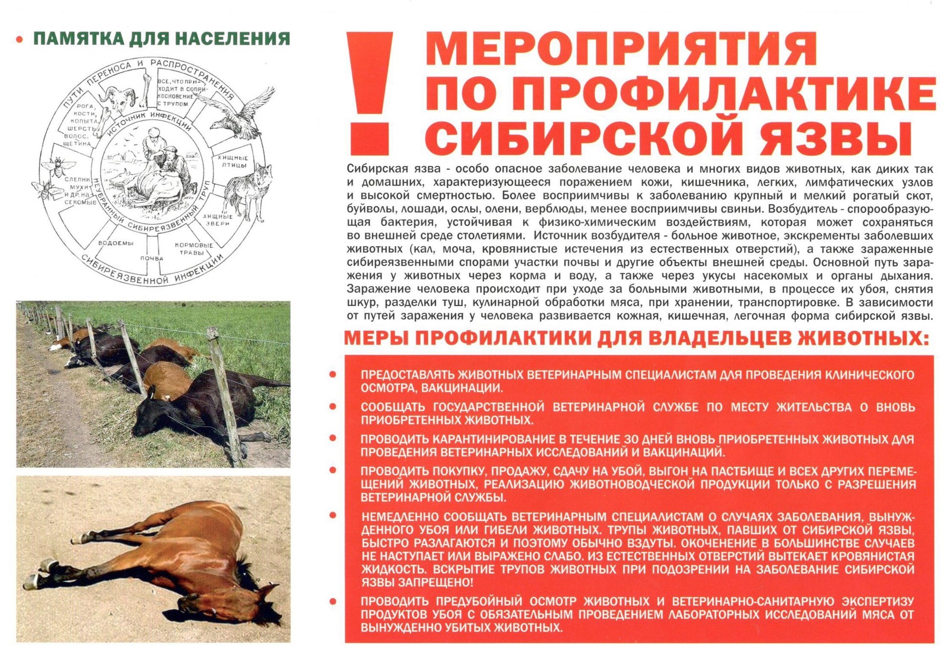 ПАМЯТКА ДЛЯ НАСЕЛЕНИЯ. Мероприятия по профилактике сибирской язвы