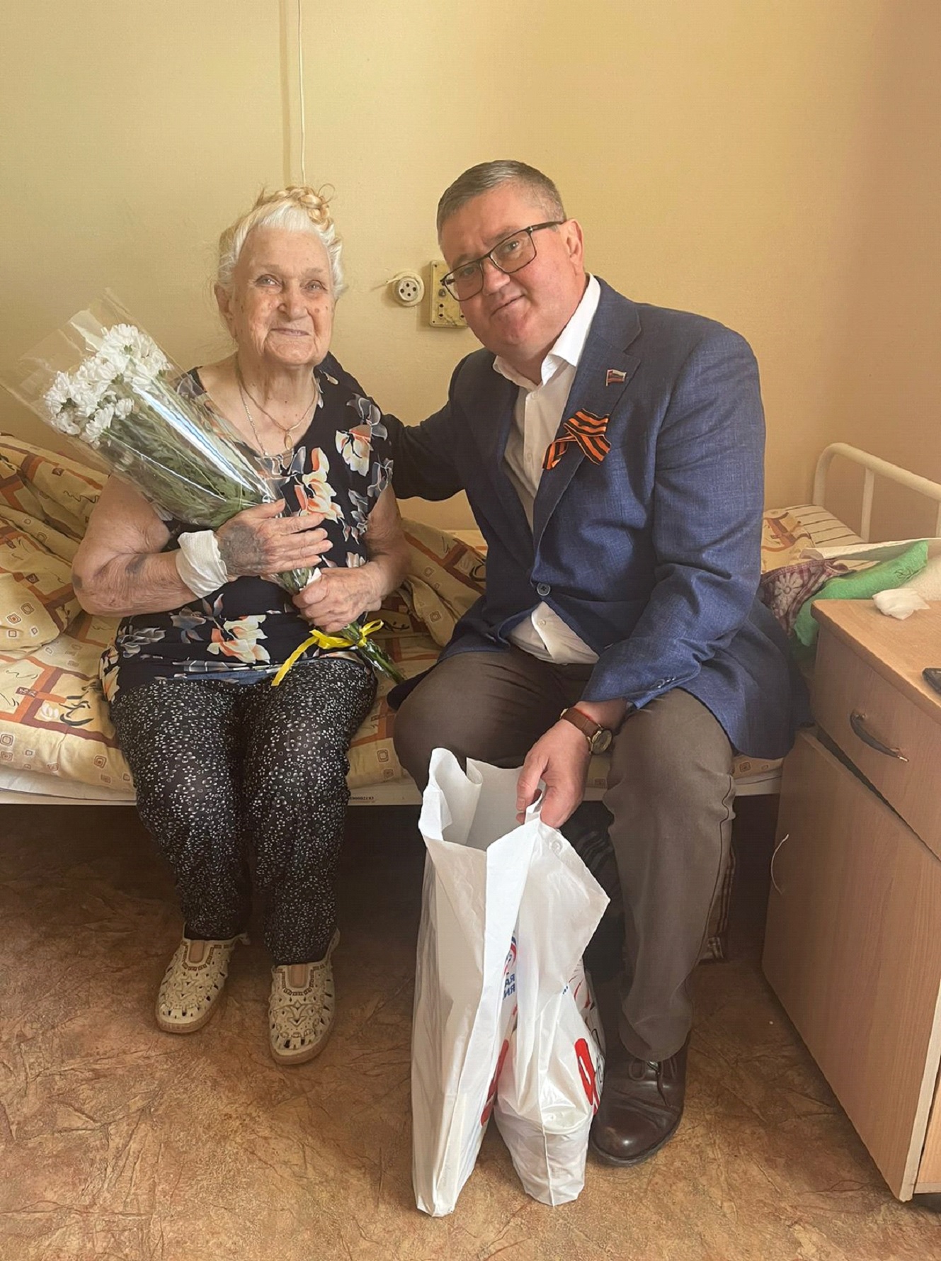 В канун 9 мая – Дня Великой Победы советского народа над фашизмом ГАУЗ «БОКД» посетили артисты Брянского театра, представители Брянского института управления и бизнеса, чтобы поздравить с Великим Праздником блокадницу г.Ленинграда Павлову Валентину Ивановну, 1930 года рождения, которая проходит стационарное лечение. Валентину Ивановну так же поздравил депутат Брянского городского Совета, главный врач ГБУЗ «Брянский областной наркологический диспансер», Заслуженный врач РФ Харитоненков В.Ф., пожелав скорейшего выздоровления и благополучия.