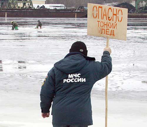 С понижением температуры воздуха регистрируются случаи провалов людей под лед, при этом гибель наступает в 65% случаев.
