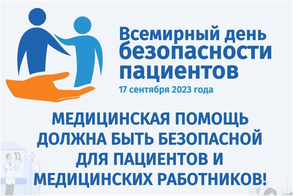 17 сентября 2023 г. Минздравом России совместно с Росздравнадзором и при взаимодействии с представительством ВОЗ в России запланировано проведение мероприятий, посвященных Всемирному дню безопасности пациентов.