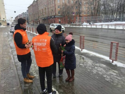 Сегодня, 8 марта в Брянске проходит праздничная акция «Вам, любимые», посвященная празднованию Международного женского дня. На улицы областного центра Брянщины, чтобы поздравить женщин с праздником, вышли волонтеры. Представительницам прекрасной половины человечества вручают цветы, говорят комплименты, теплые слова и пожелания, сообщает РИА « Стрела «.