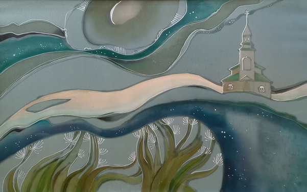 Любовь Ивахненко – выпускница художественно-графического факультета Смоленского государственного педагогического института, работала в технике холодного батика. Для её творчества характерно чуткое и удивительно тонкое восприятие окружающего мира, которое она воплощала в своих произведениях с виртуозным мастерством. На выставке представлена единственная хранящаяся в собрании музея работа Л.Т. Ивахненко, – батик «К нам на воды и леса опускаются небеса…».
