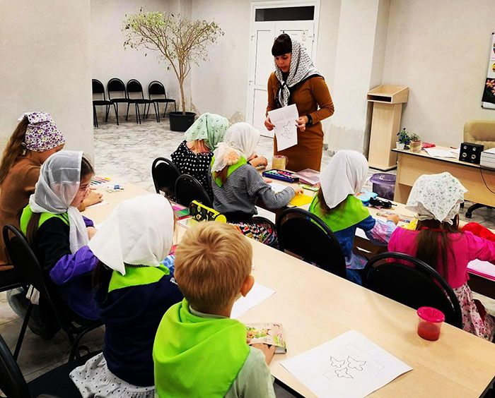 В воскресной школе кафедрального Богоявленского собора для воспитанников младшей группы прошло занятие на тему: «Крестное знамение. Крест и его значение для христианина».