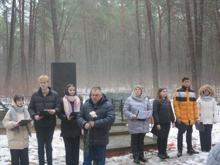 Сегодня возле мемориала собрались земляки, чтобы почтить память невинно убиенных людей в Карховском лесу: это руководители округа, представители общественных организаций, депутаты городского Совета и Облдумы, представители СМИ, старшеклассники и просто неравнодушные люди. На митинге выступили школьники, руководители, почётные гости. Участники мероприятия почтили минутой молчания трагически погибших в годы Великой Отечественной войны земляков, возложили алые гвоздики и сделали фото на память.