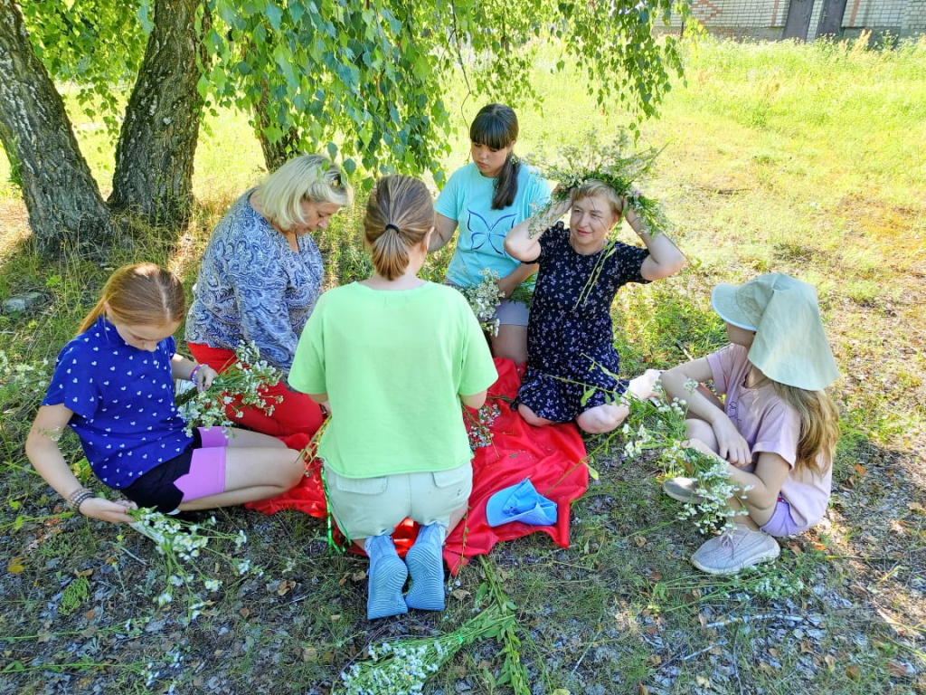 Участникам мероприятия рассказали о празднике, его традициях, обрядах и приметах. Девчонки плели венки из луговых цветов, украшали ими волосы и использовали для гадания на воде.